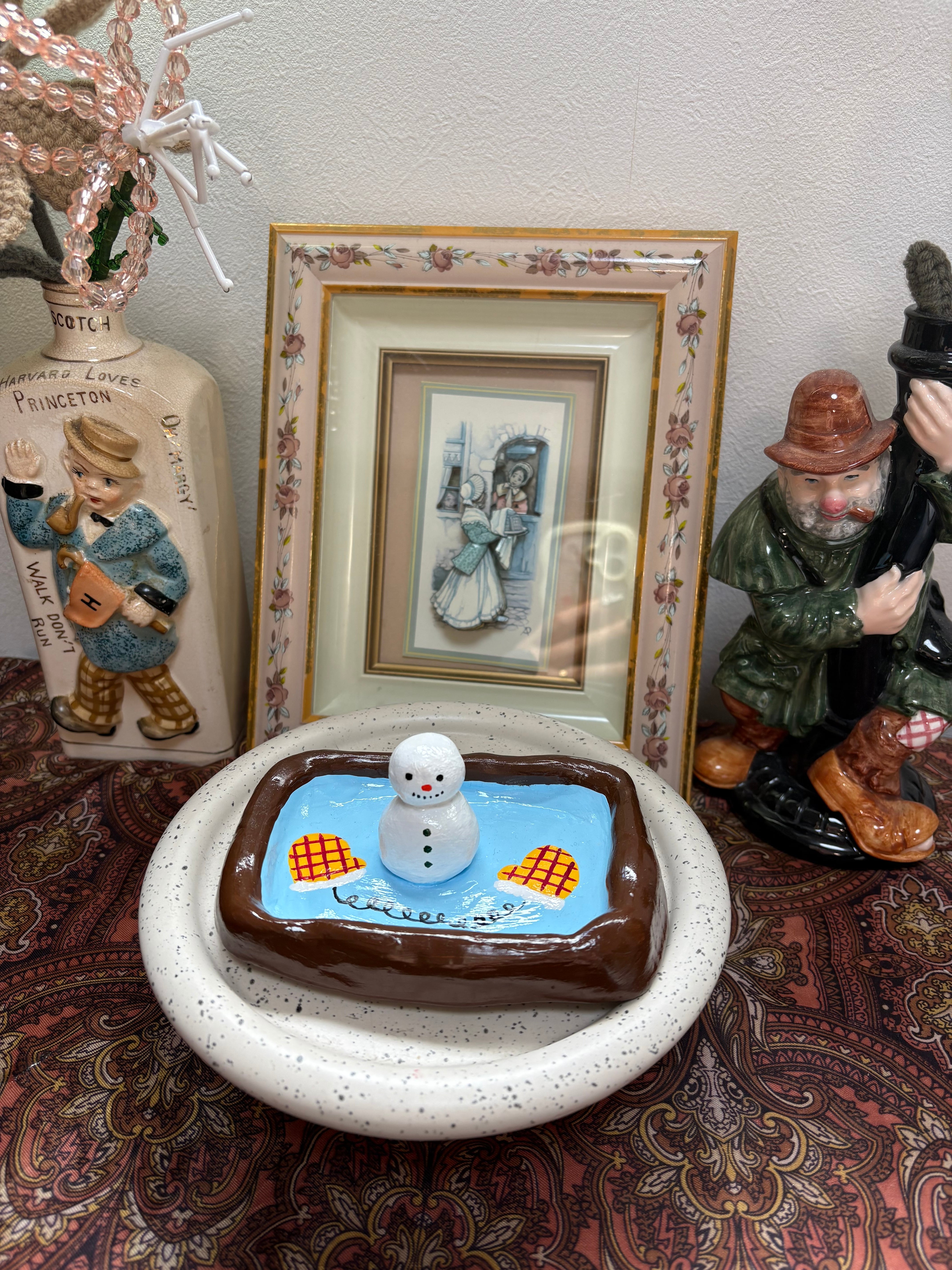 雪だるまの陶器製の小皿です。